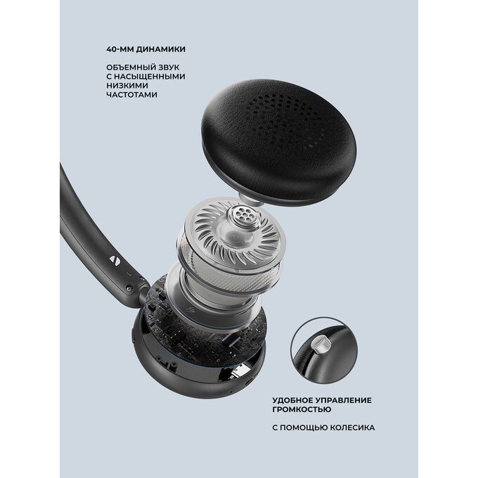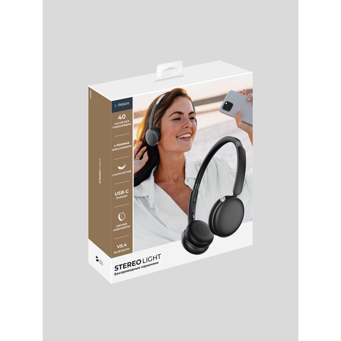 Беспроводные накладные наушники Stereo Light, BT 5.4, 300 мАч, черный, Deppa