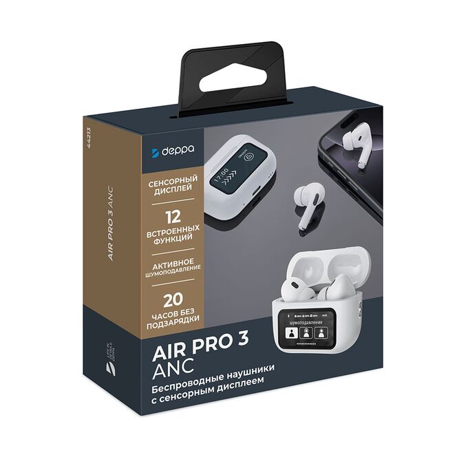 Беспроводные наушники с микрофоном Air Pro 3 ANC, TWS, BT 5.3, 350 мАч, ANC, LCD, белый, Deppa