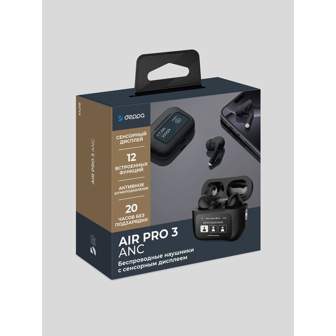 Беспроводные наушники с микрофоном Air Pro 3 ANC, TWS, BT 5.3, 350 мАч, ANC, LCD, черный, Deppa