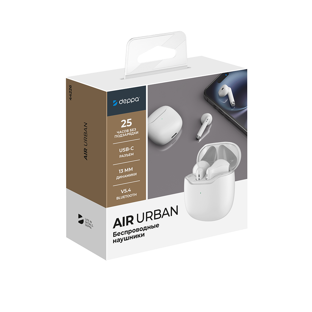 Беспроводные наушники с микрофоном Air Urban, TWS, BT 5.3, 320 мАч, белый, Deppa