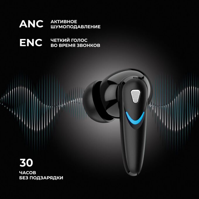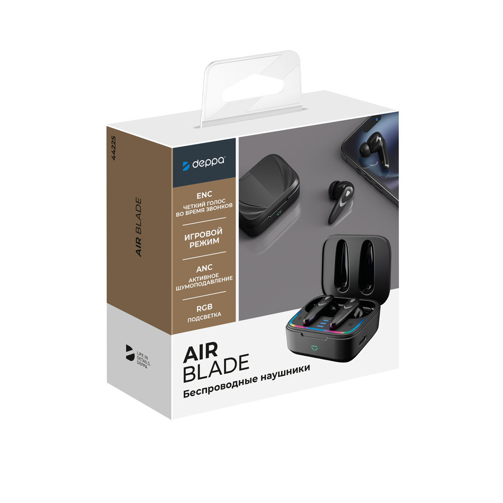 Беспроводные наушники с микрофоном Air Blade, TWS, BT 5.4, ANC, Gaming, 470 мАч, черный, Deppa