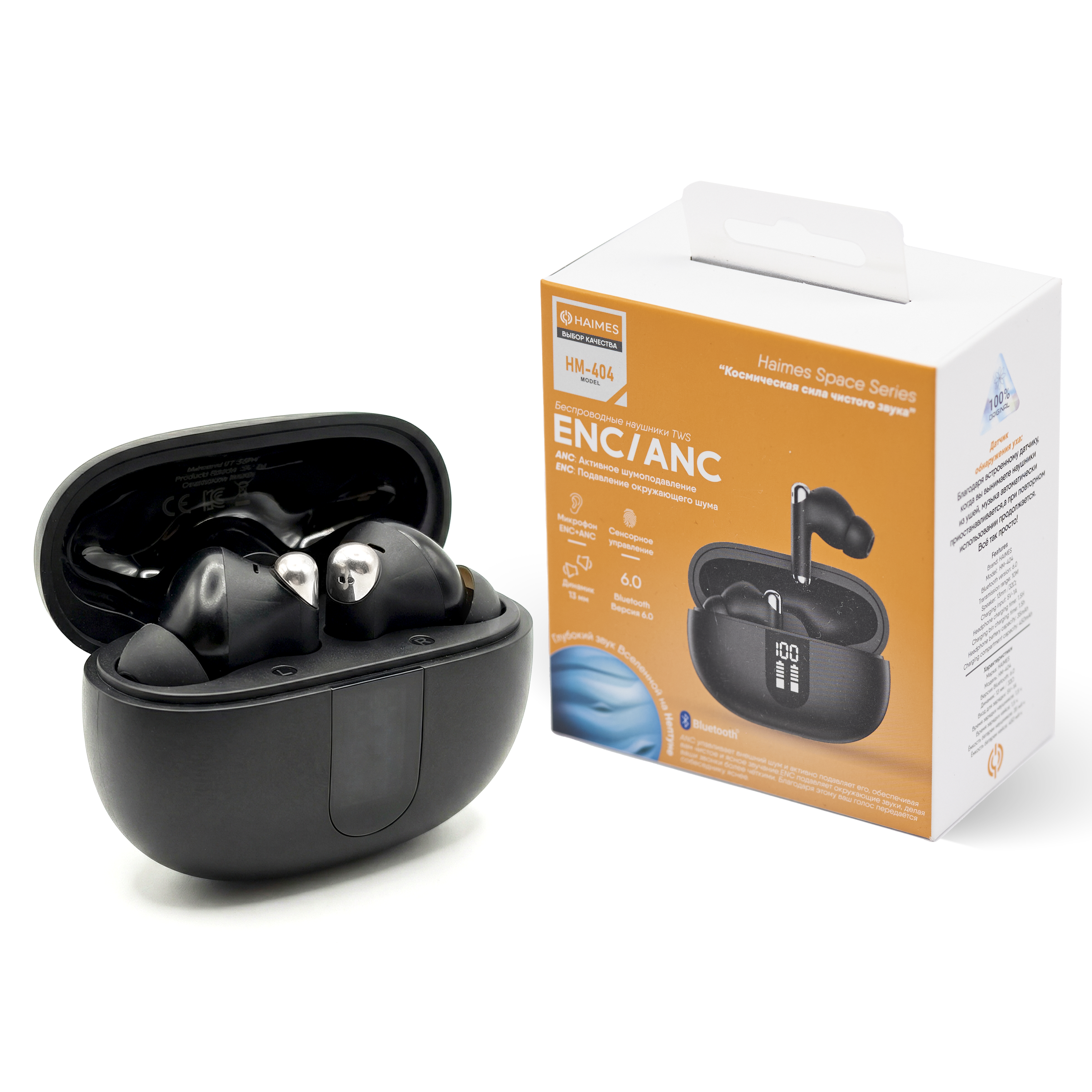 Беспроводный вакуумные наушники ENC, Кейс 450Mah IPX5/LED, HAIMES HM-404, Bluetooth 6.0