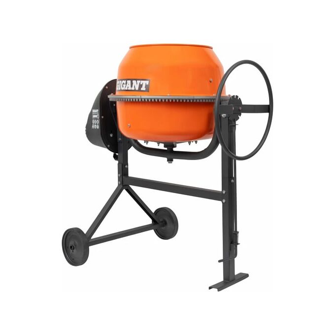 Бетоносмеситель Gigant БС-120 представляет собой надежное и эффективное устройство для приготовления строительных растворов. Оснащенный электрическим двигателем мощностью 600 Вт, он работает от стандартной сети напряжением 220 В, что делает его удобным для использования в бытовых условиях. Барабан объемом 120 литров позволяет приготовить до 46 литров готового раствора за один цикл. Скорость вращения барабана составляет 26 об/мин, что обеспечивает равномерное перемешивание компонентов. Чугунный венец и венечный тип привода гарантируют долговечность и устойчивость конструкции. Гравитационный принцип действия и механизм опрокидывания с штурвалом упрощают процесс выгрузки раствора.