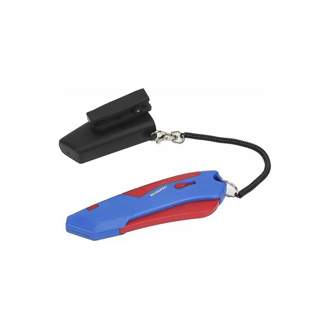 Нож безопасный с кобурой (лезвия 4шт) WP213010 Workpro используется для резки бумаги, картона, линолеума и других целей. Корпус выполнен из качественного ABS-пластика. Специальный пластиковый чехол защищает головку инструмента и обеспечивает безопасную переноску. Прочный пластиковый зажим позволяет носить изделие на рабочей одежде. Лезвия выполнены из качественной стали, стойкой к коррозии, а также легко заменяются при необходимости с помощью нажатия двух кнопок на корпусе.