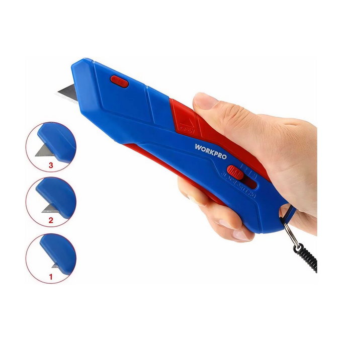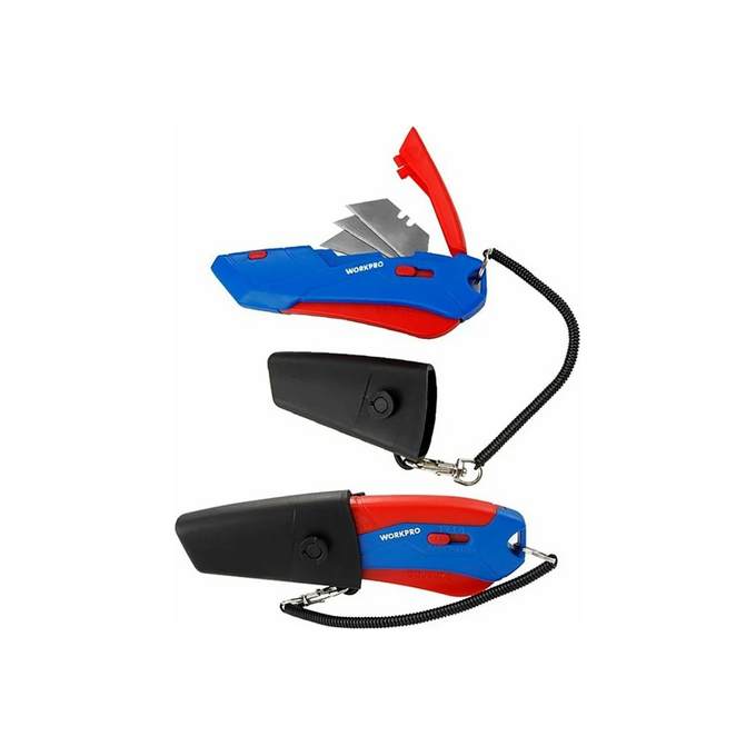 Безопасный нож Workpro WP213010 трапец. лезвия/в чехле