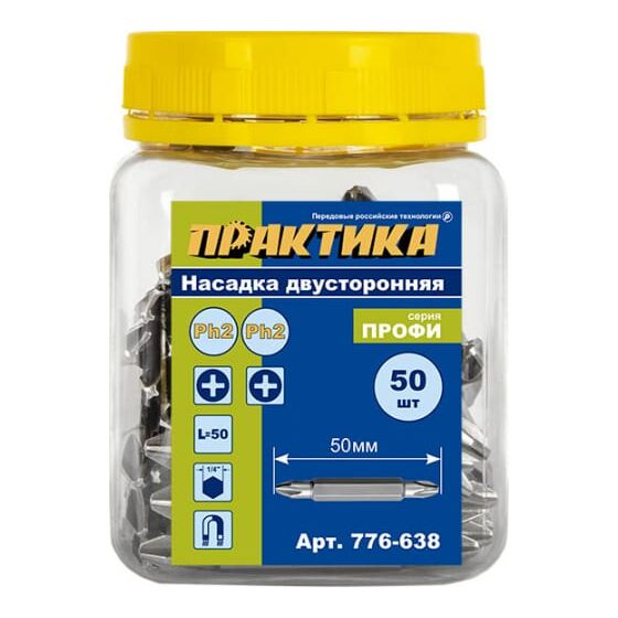 Бита отверточная Практика Профи PH-2/PH-2 х 50мм (776-638) двусторонняя/банка 50шт