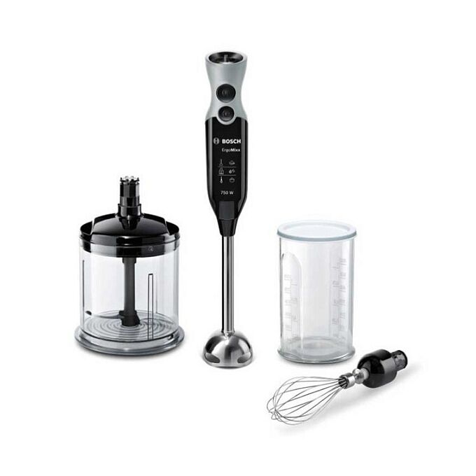 Блендер Bosch MSM 67160 оснащен металлической погружной частью, позволяющей работать с продуктами любой температуры. Турборежим дает возможность быстро перемешивать и измельчать ингредиенты. Он предназначен для приготовления небольших порций, так как емкость кувшина составляет 600 мл. В комплекте поставляются: измельчитель размера XL, мерный стакан (600 мл) и венчик для взбивания из нержавеющей стали.