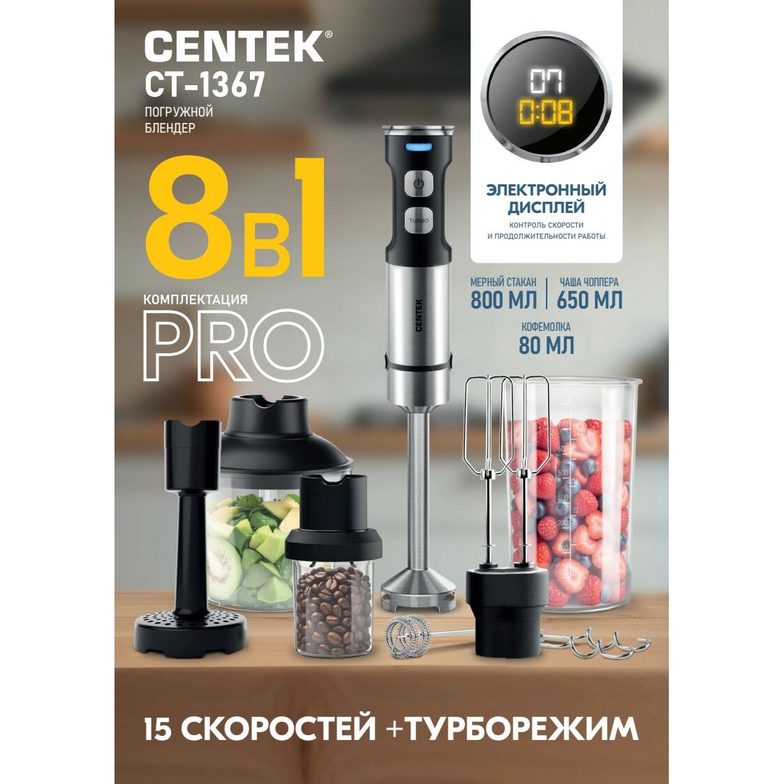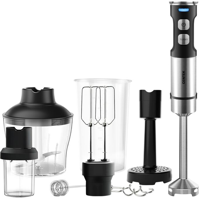 мерный стакан (0.8 л), чаша, измельчитель, насадка-блендер, венчик (2 шт.), кофемолка (0.08 л), насадка для пюре, насадка для вспенивания молока (капучинатор), крюк для теста (2 шт.)