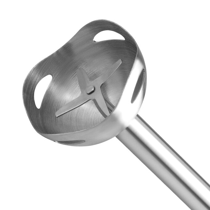 Насадка-блендер выполнена из высококачественной долговечной нержавеющей стали AISI 304, что позволяет измельчать особо твердые и горячие продукты.