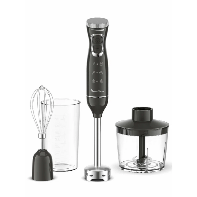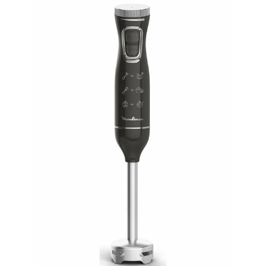 Погружной блендер Moulinex DD5R38F0 — компактная (20,6х5,2х5,2 см) модель, которая благодаря сменным насадкам включает в себя три прибора: блендер, чоппер, миксер. Эргономичный дизайн и механическое интуитивное управление делают процесс приготовления максимально комфортным за счет точного контроля степени измельчения.