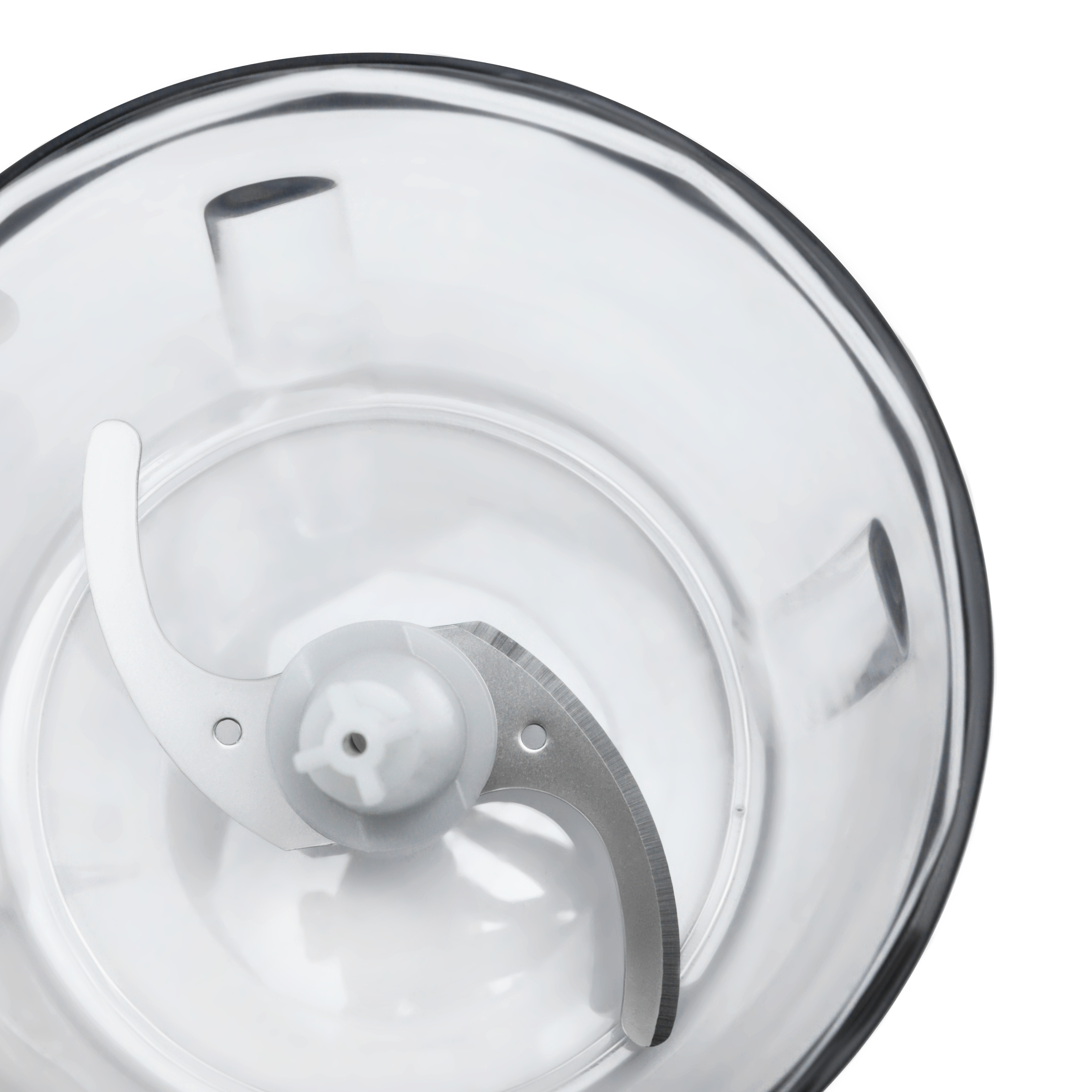 Высокий стакан в комплекте удобно использовать для измельчения и смешивания погружной частью, ингредиенты не разбрызгиваются по столу, оставляя рабочую поверхность чистой. Для стационарного варианта лучше использовать чашу-измельчитель с острым ножом, который справится с ингредиентами разной твердости.
