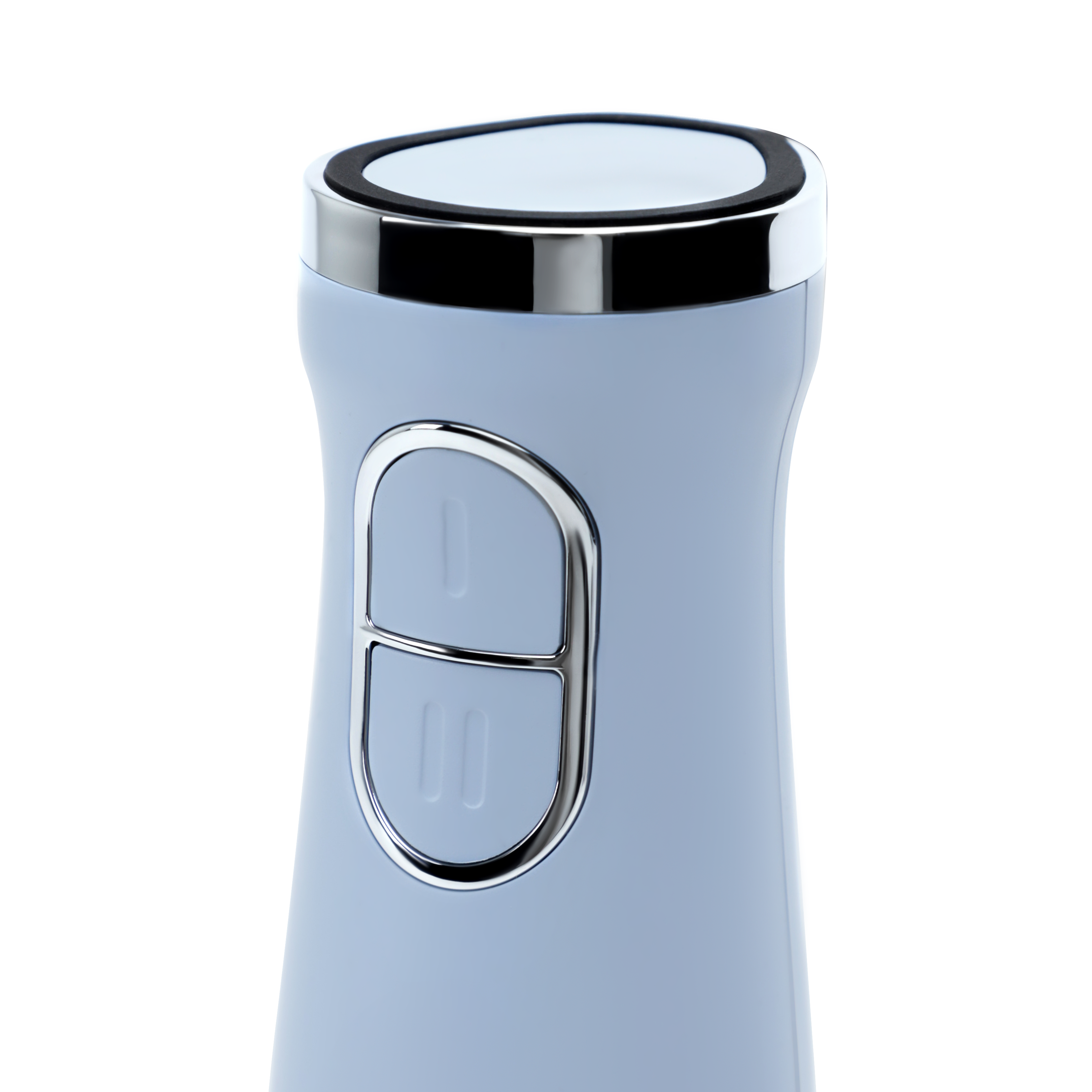 Небольшой по размерам ручной мини-блендер имеет 2 скорости работы и подходит для самых разнообразных задач на кухне, а также станет удобным портативным вариантом для поездок на дачу и в отпуск.