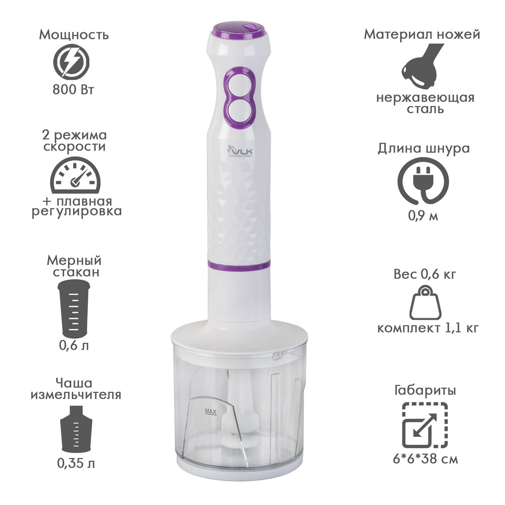 Блендер VLK Profi 104 погружной белый/сиреневый