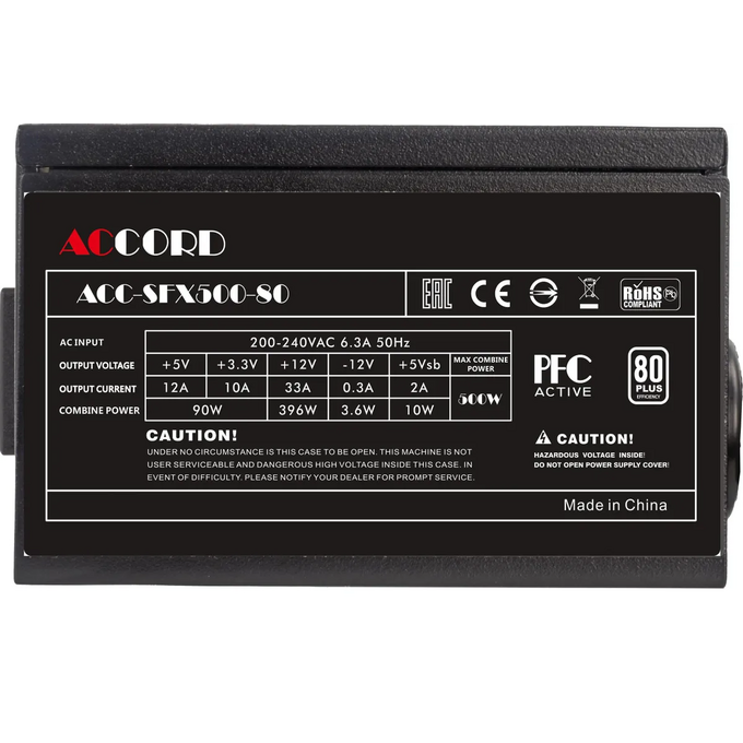 Блок питания Accord ACC-SFX500-80, SFX 500W 24pin APFC 80mm fan 3xSATA RTL