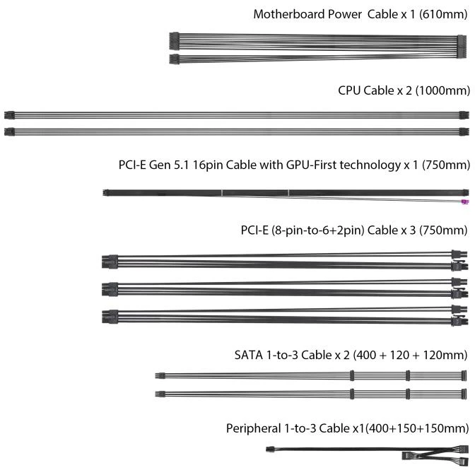 Количество разъёмов 12+4-pin PCI-E 5.1 (12V-2х6)