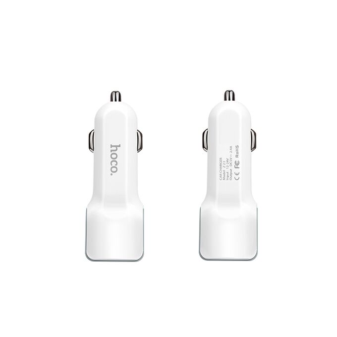 Блок питания автомобильный 2 USB HOCO, Z23, Grand Style, 2400mA, soft touch, кабель 8 pin, цвет: белый (1/25/250)
