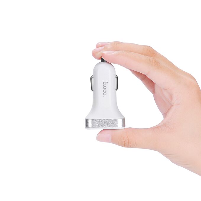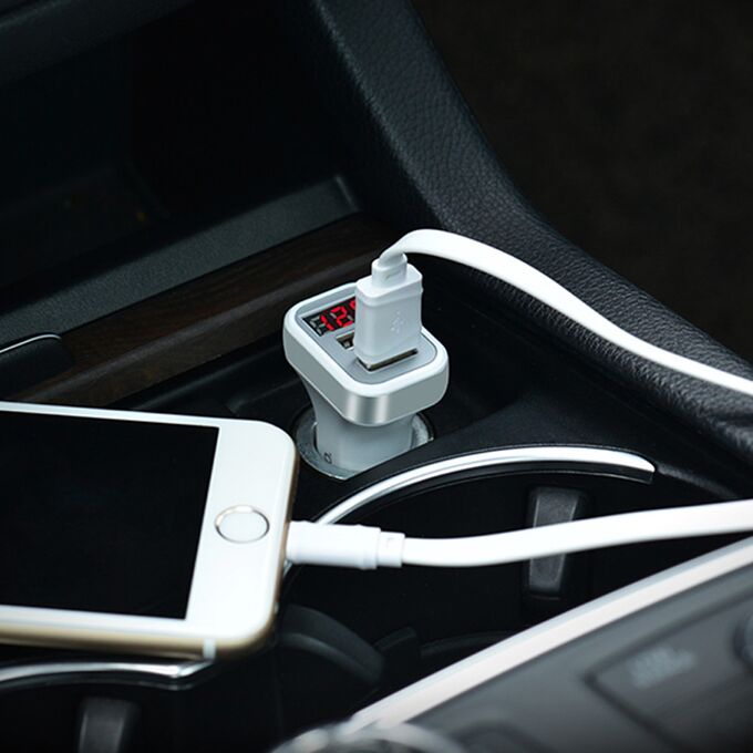 Блок питания автомобильный 2 USB HOCO Z3, 3100mA, пластик, дисплей, цвет: белый (1/21/126)