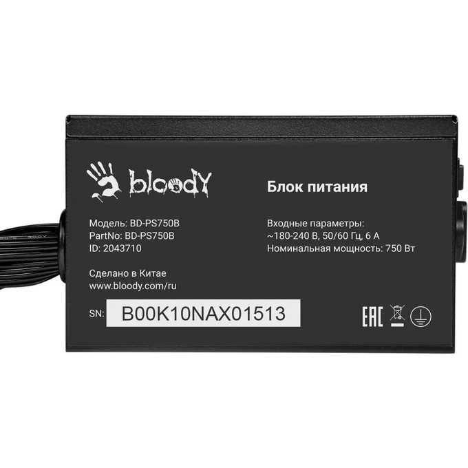 Блок питания BLOODY BD-PS750B, 750Вт, 120мм, черный, retail