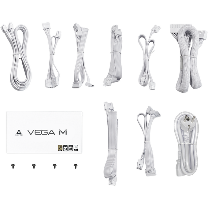 Блок питания Chieftec Vega M White PPG-1000-CW (ATX 3.1, 1000W, 80 Plus Gold, Active PFC, 135mm fan, Gen5 PCIe, Full Cable Management, белый) Retail