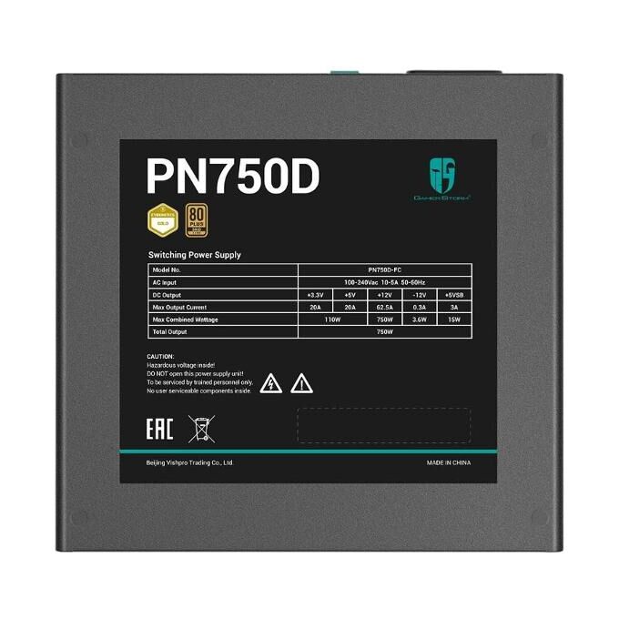 Блок питания DeepCool Gamer Storm PN750D Gen.5 (r-pn750d-fc0b-wgeu-v2), 750Вт, 80 Plus Gold, 120мм, черный, retail