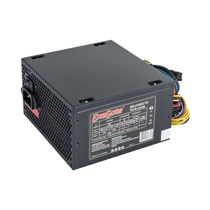 Блок питания Exegate EX221636RUS-S 400NPXE(+PFC), ATX, SC, black,12cm fan, 24p+4p, 6/8p PCI-E, 3*SATA, 2*IDE, FDD + кабель 220V с защитой от выдергива