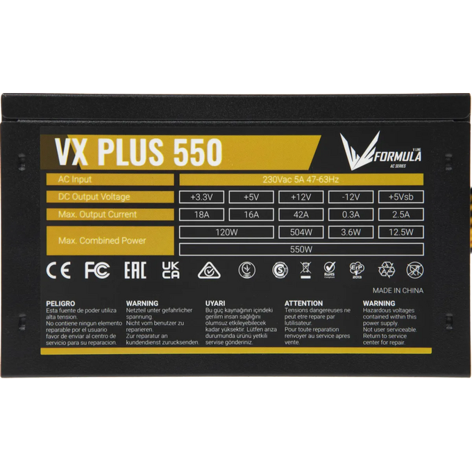 Блок питания Formula AC VX Plus (VX Plus 550W) ATX 550W (20+4pin) 120mm fan 3xSATA RTL