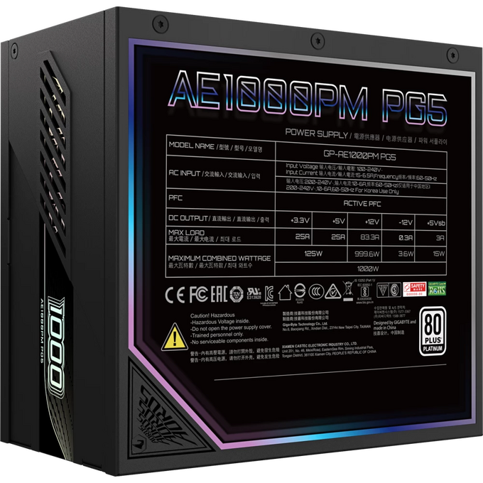 Блок питания GIGABYTE GP-AE1000PM PG5, Gen.5, 1000Вт, 120мм, черный, retail
