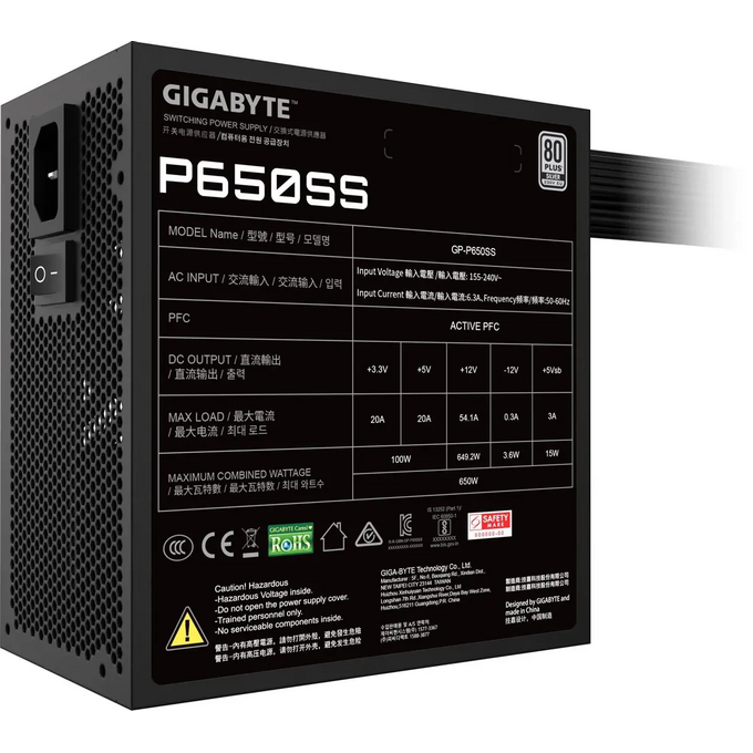 Блок питания Gigabyte GP-P650SS (28200-P65SB-1EUR) ATX 650W 80+ silver (20+4pin) APFC 120mm fan 5xSATA RTL