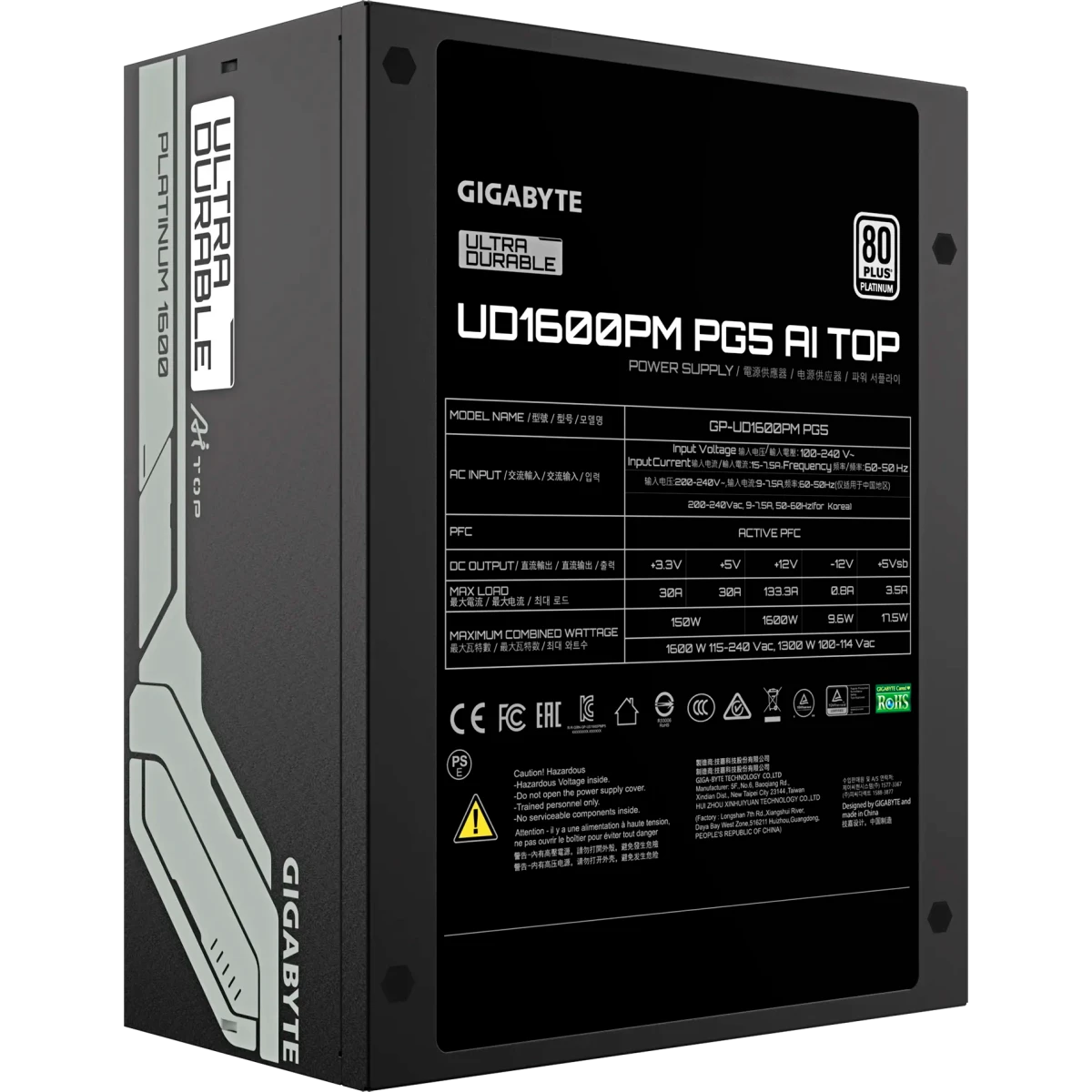 Блок питания Gigabyte UD1600PM PG5 AI TOP (GP-UD1600PM PG5) 1600W, 80Plus, Platinum, Полностью модульный, PCIe Gen 5.0, ATX 3.1 compatible