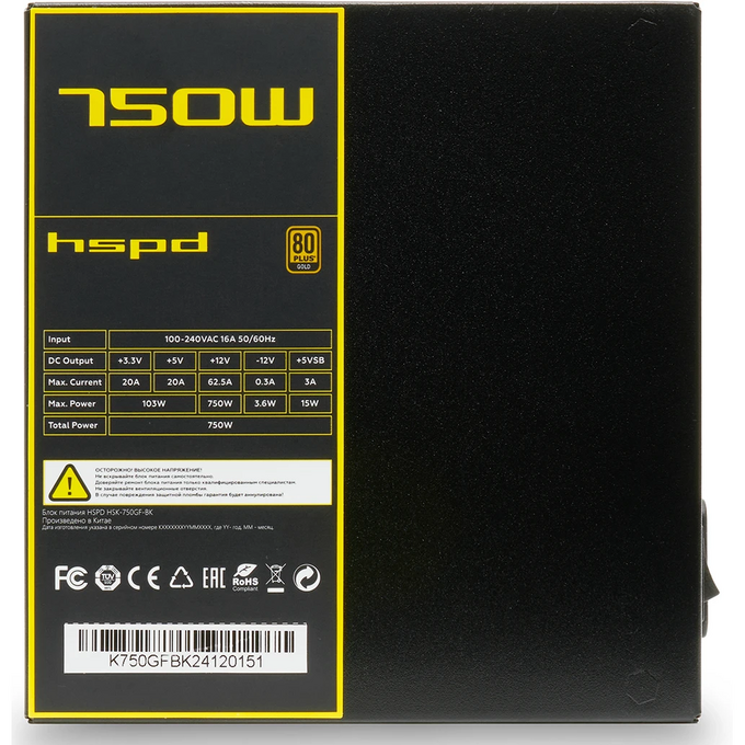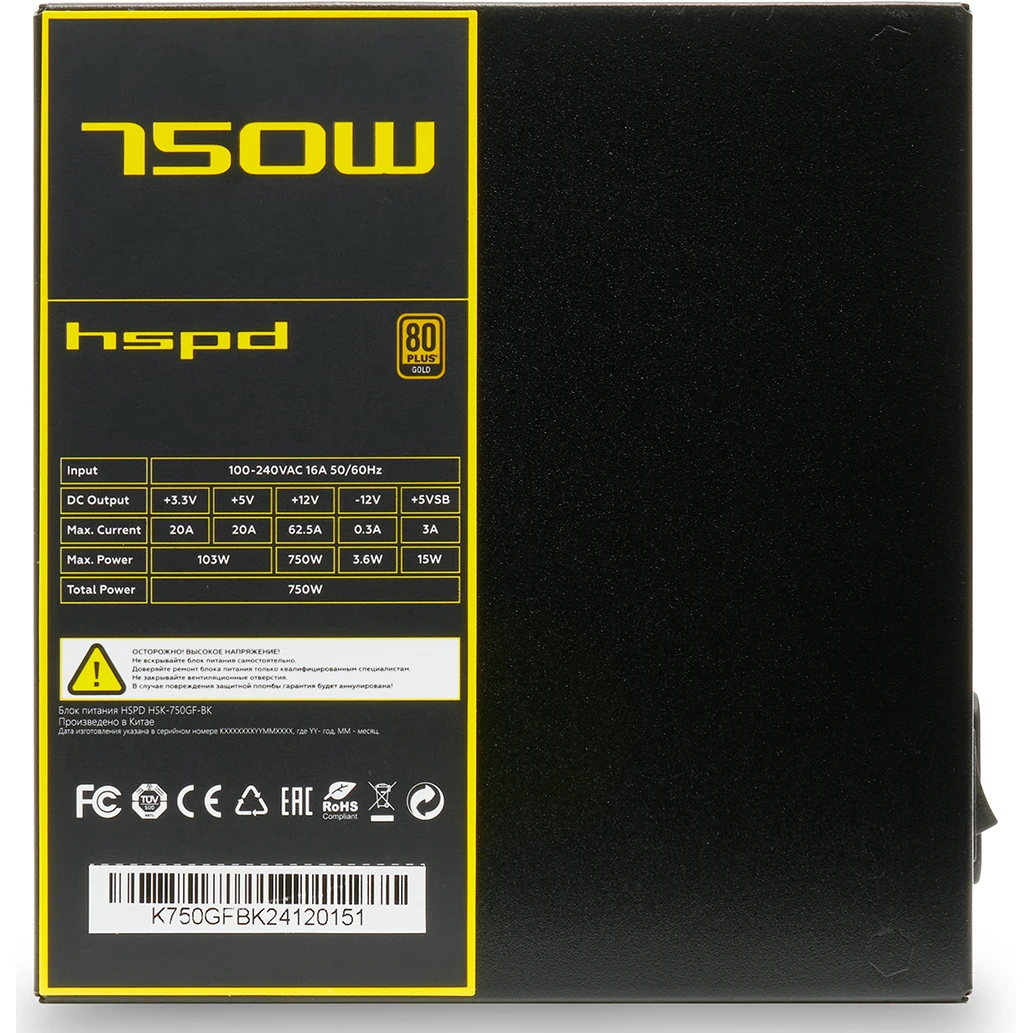 Блок питания HSPD HSK-750GF-BK 750W 80+ Gold (ATX, 2.52, Full modular, 1x24(20+4)pin mesh 550mm, 1xCPU*2 8(4+4)pin 650+150mm, 2xPCIe*2 8(6+2)pin