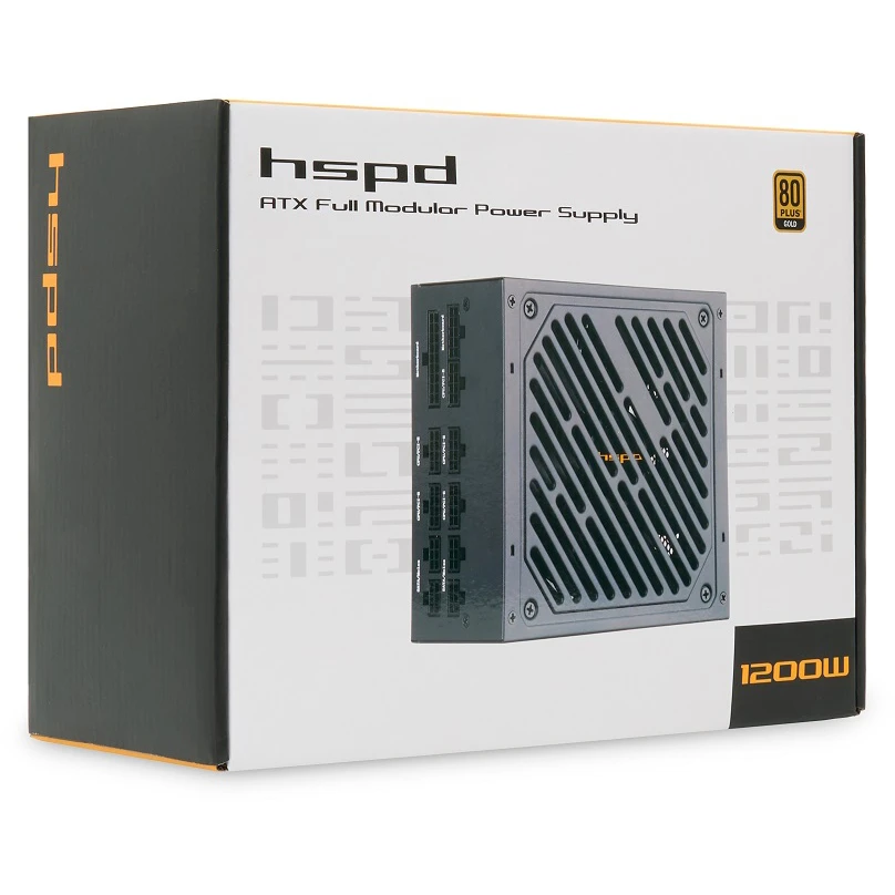 Блок питания HSPD HST-1200GF-BK 1200W 80+ Gold (ATX, 2.52, Full modular, 1x24(20+4)pin 600mm, 2xCPU 8(4+4)pin 700mm, 2xPCIe*2 8(6+2)pin