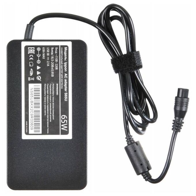 Блок питания Ippon (S65U) автоматический 65W 15V-19.5V 11-connectors 4.3A 1xUSB 2.1A от бытовой электросети LED индикатор