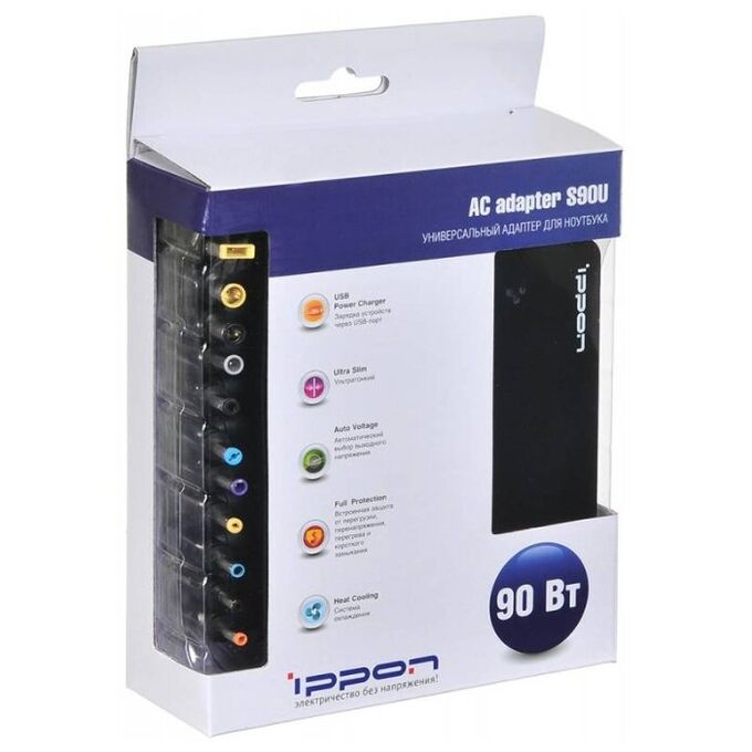 Блок питания Ippon (S90U) автоматический 90W 15V-19.5V 11-connectors 5A 1xUSB 2.1A от бытовой электросети LED индикатор