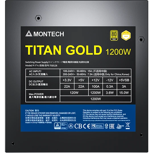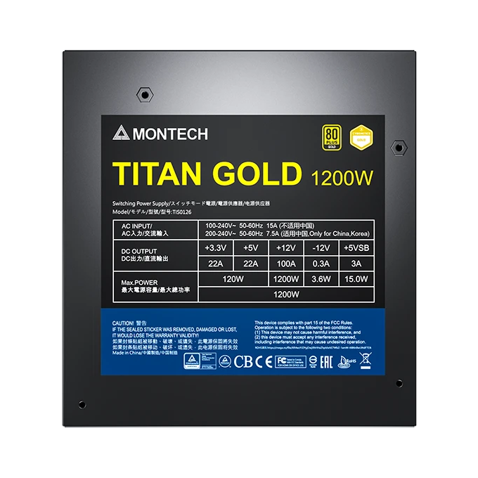 Блок питания MONTECH Titan Gold Gen.5 (TIS0126), 1200Вт, 135мм, retail