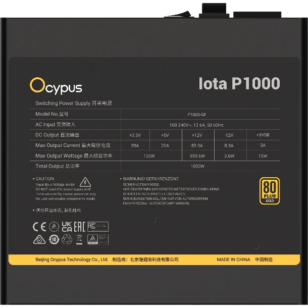 Блок питания Ocypus Iota P1000 1000W Black (Iota-P1000-G1FFBK024X-EU) (120mm, APFC, 80Plus Gold, Modular)