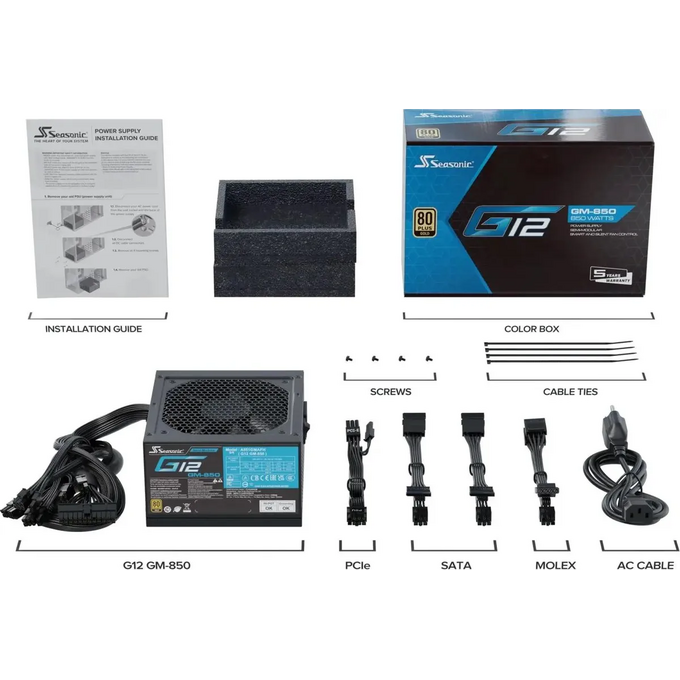 Блок питания Seasonic G12 GM-850 (g12 gm-850 ssr-850fm), 850Вт, 120мм, черный, retail