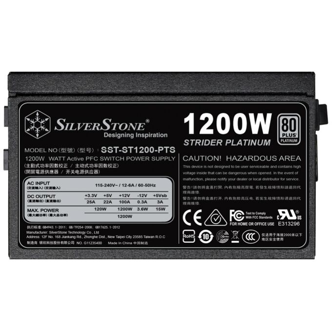 Блок питания Silverstone Strider Platinum Series SST-ST1200-PTS , 1200W 80 Plus Platinum, ATX PC Power Supply, 120mm HYB quient fan, 140mm depth