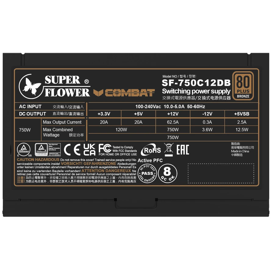 Блок питания Super Flower Combat DB SF-750C12DB 750W ATX3.1 ATX 3.1, 120mm, 6xSATA, 3xPCI-E(6+2), 1xPCI-E 16, APFC, 80+ Bronze