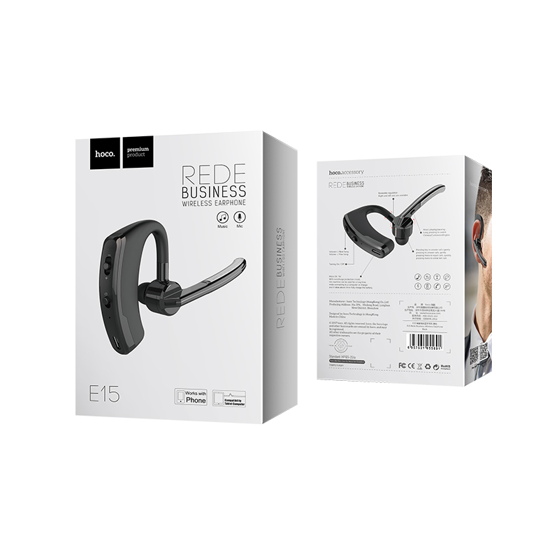 Беспроводная гарнитура Hoco E15 Rede Business Wireless Earphone позволяет принимать вызовы по телефону и оставаться на связи, когда вы ведете автомобиль или у вас заняты руки. Устройство сочетает стильный дизайн и высокую функциональность. Это практичный аксессуар, имеет небольшой вес и незаметен при ношении. Hoco E15 Rede Business Wireless Earphone - это многофункиональный девайc, идеально подходит к деловому имиджу.