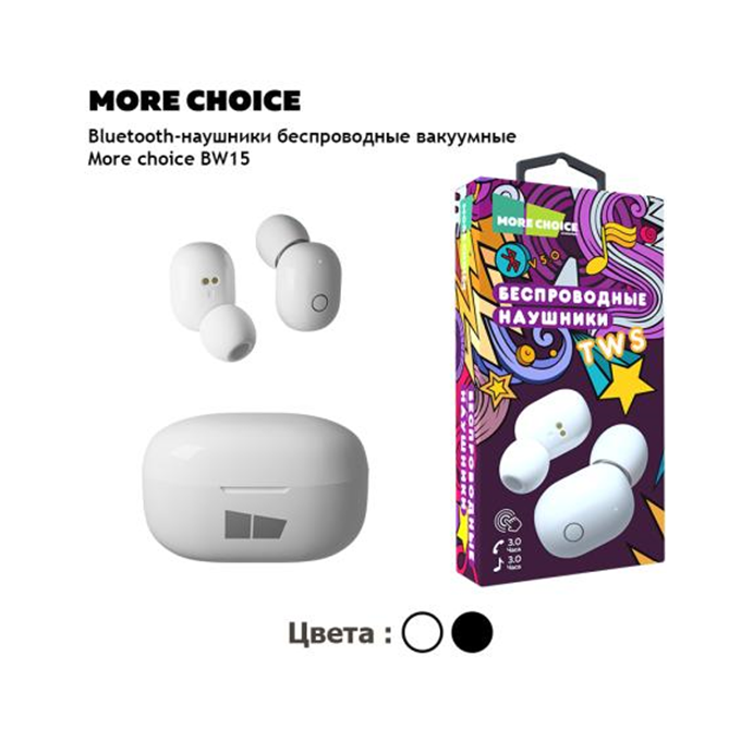 Bluetooth-наушники беспроводные вакуумные More choice BW15 TWS (Black)