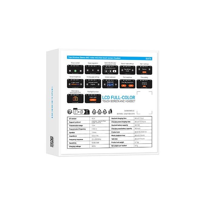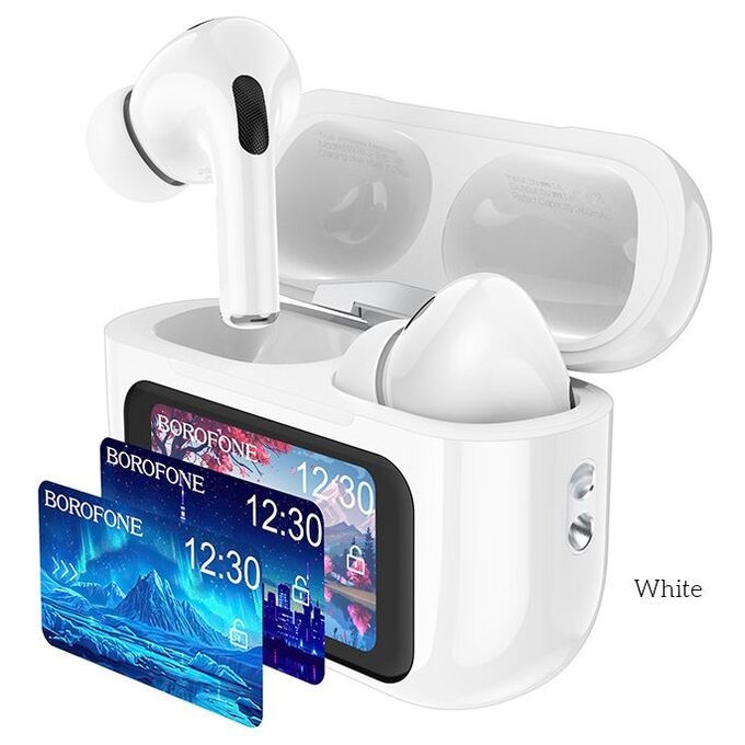 Блютуз гарнитура TWS Borofone BW76/ ANC/ сенсорный экран/ Белый