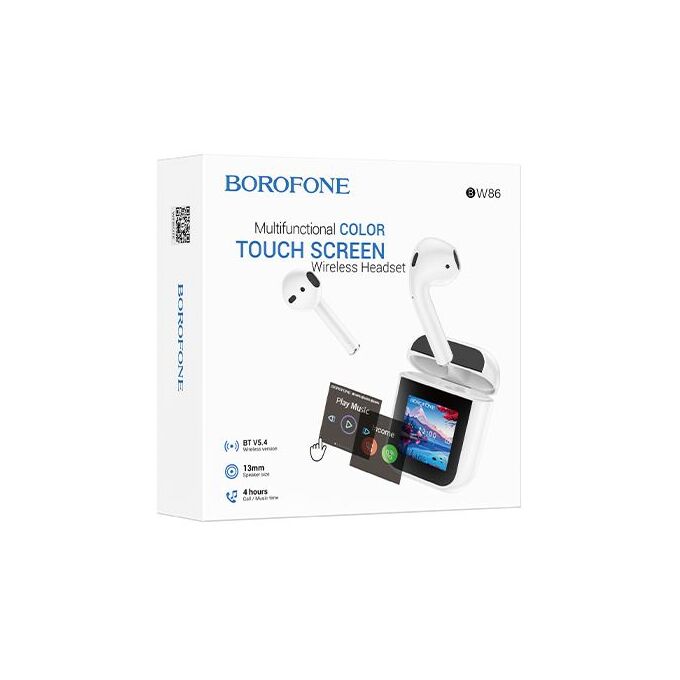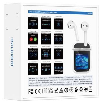 Блютуз гарнитура TWS Borofone BW86/ сенсорный экран/ Белый