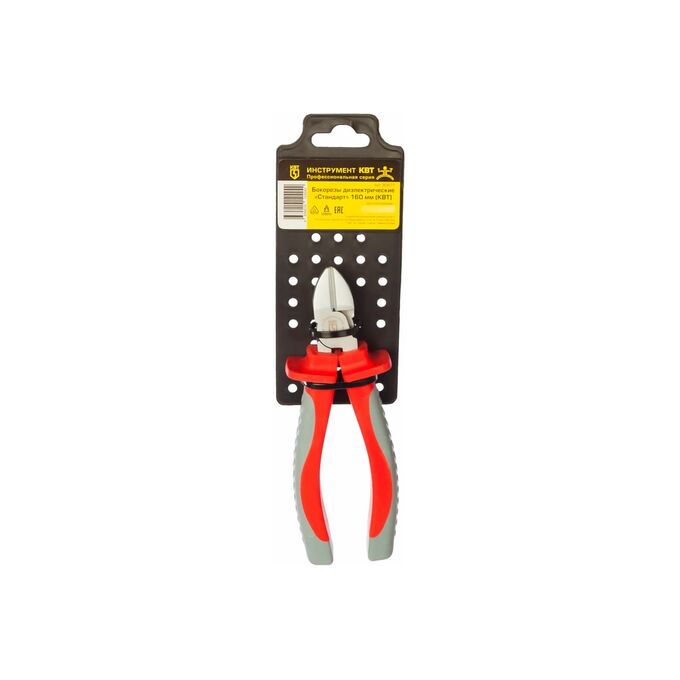 У изолированных бокорезов 160 мм КВТ 60471 рукоятки имеют диэлектрическое покрытие, что позволяет работать с проводами под напряжением до 1000 В.