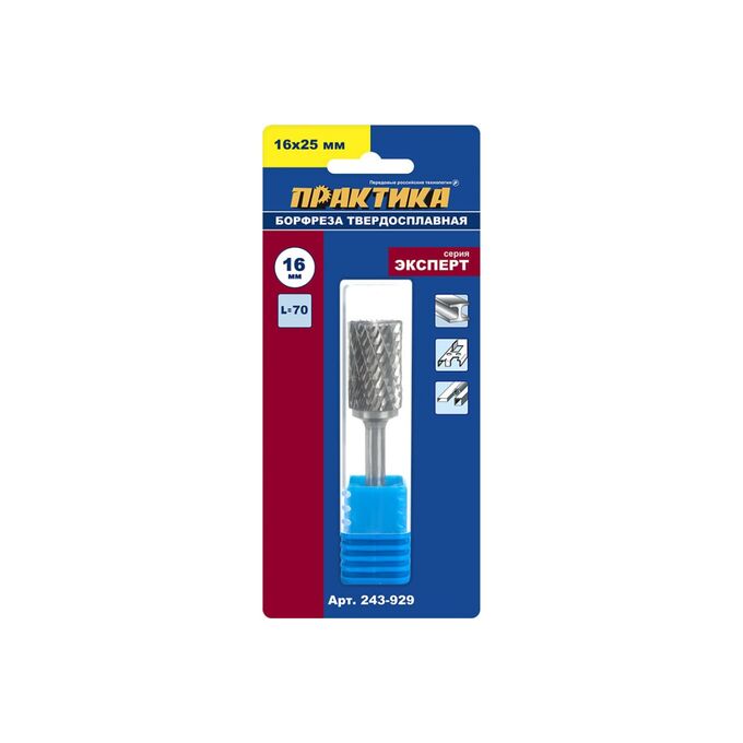 Борфреза твердосплавная Практика тип B цилиндрическая (243-929)16 х 25 мм, хвостовик 6 мм