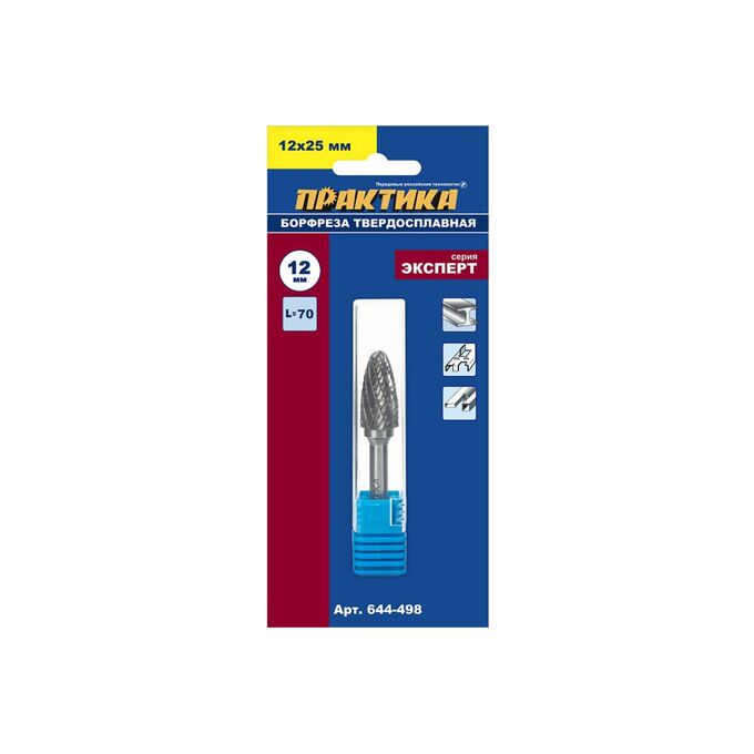 Борфреза твердосплавная Практика тип F параболическая (644-498) 12 х 25 мм, хвостовик 6 мм