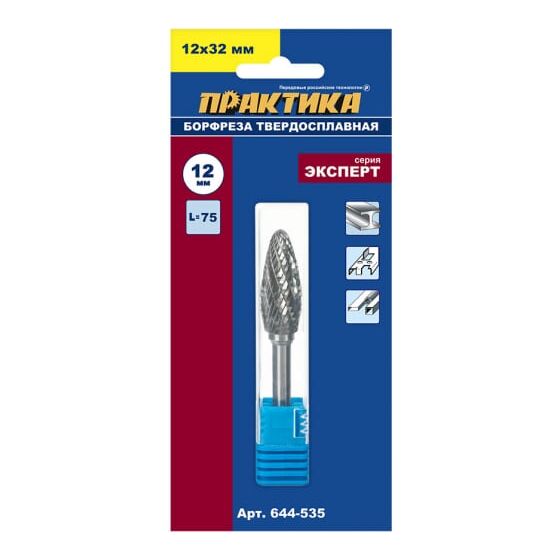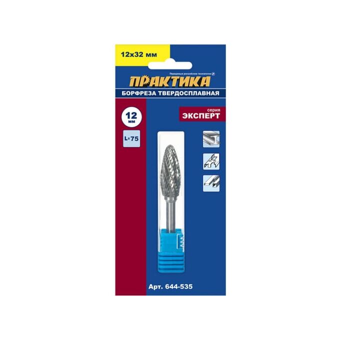 Борфреза твердосплавная Практика тип H эллипсовидная (644-535) 12 х 32 мм, хвостовик 6 мм