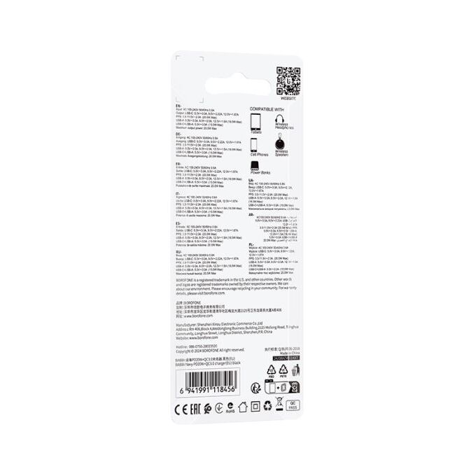 Кроме высокой мощности в 20 Вт, зарядное устройство Borofone BA88A гарантирует безопасность при эксплуатации благодаря встроенной защите от короткого замыкания, перегрева и перезарядки. Делая выбор в пользу этого устройства, вы получаете надежного партнера для зарядки своих устройств. Не упустите возможность увеличить эффективность своей зарядки с Borofone BA88A!