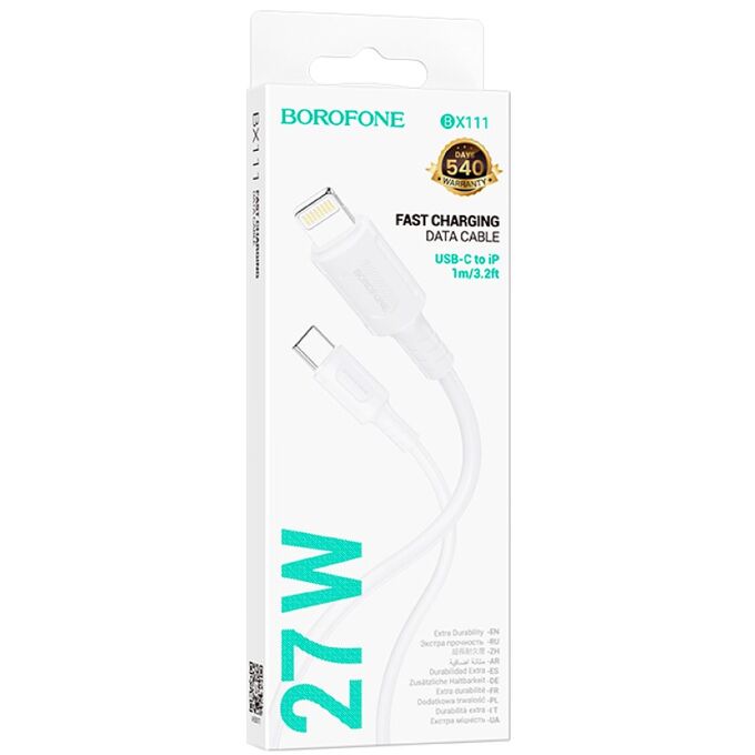 Кабель BOROFONE BX111/ USB Lightning/ 1m/ 2.4A/ Белый