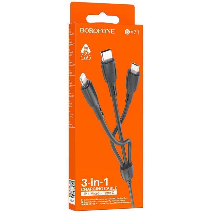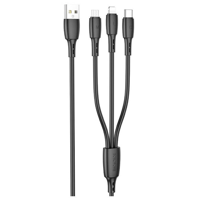 Кабель BOROFONE BX71/ USB 3-in-1: Lightning+Micro+Type-C/ 1m/ 2A/ Черный