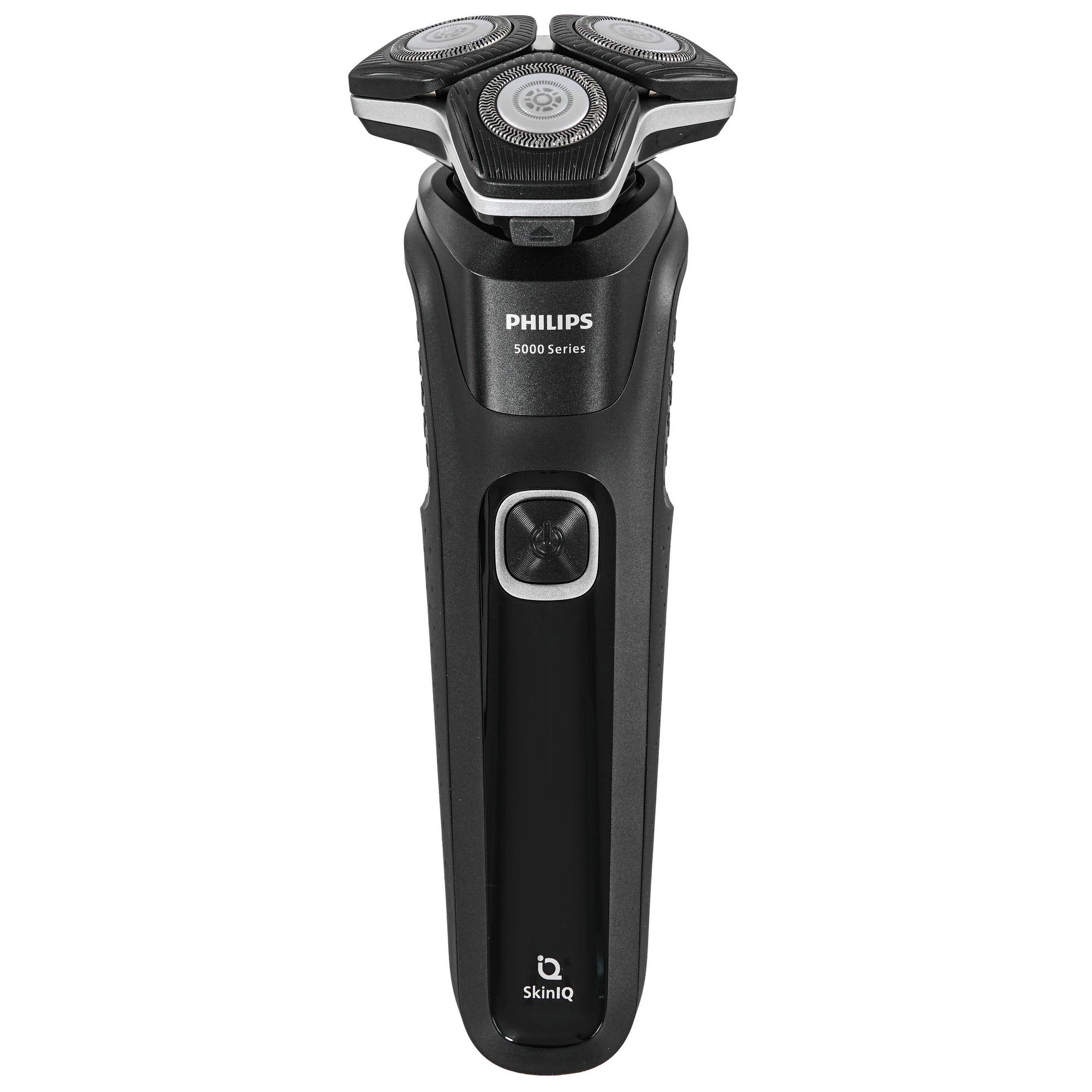 Электробритва Philips S5898/35 роторного типа подходит для сухого и влажного бритья. К 3 секциям прилагаются плавающие головки, повторяющие контуры лица в процессе. Это означает, что создать подходящие условия для бритья можно даже для чувствительной кожи. В этом также помогает технология SkinIQ, анализирующая особенности лица владельца и подбирающая к нему оптимальные условия. Например, она распознает тип щетины и ее густоту. Устройство может работать от аккумулятора до 1 ч при условии полной зарядки. Его можно брать с собой – для безопасности у него есть функция блокировки кнопок и дорожный чехол. Дополнительно предусмотрена возможность использовать Philips S5898/35 в качестве триммера.